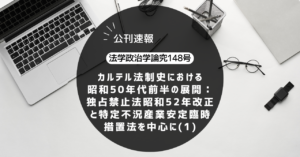 【論文(査読付き)】「カルテル法制史における昭和50年代前半の展開:独占禁止法昭和52年改正と特定不況産業安定臨時措置法を中心に(1)」法学政治学論究148号