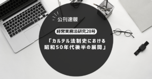 【論文(査読付き)】「カルテル法制史における昭和50年代後半の展開」経営実務法研究28号
